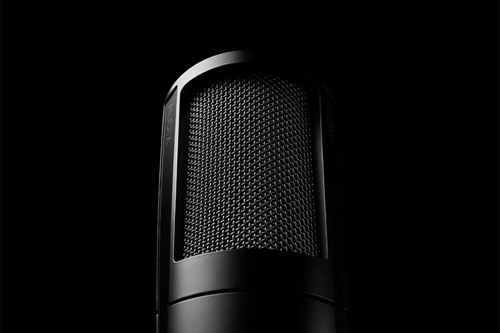 The unique design is directly influenced by PDX720, featuring an internal vibration dampening system for the capsule, all housed in a solid metal body with integrated attachment arm for both mic stand and XLR connector.