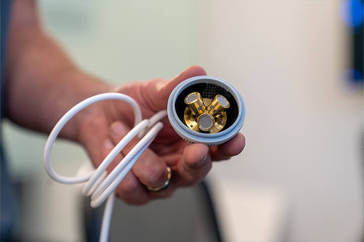 The M3 ceiling microphone incorporates three phase-coherent hypercardioid capsules with tailored frequency response optimized for speech intelligibility. This is accomplished by minimizing frequencies caused by noise, vibration, paper shuffling, keyboard strokes, fans, and heating /air conditioning. Low noise preamp circuitry is employed for the highest possible signal to noise and studio-quality sound. A high-quality silicone jacketed microphone cable ensures a balanced, shielded signal and a very clean look. Electronics above the ceiling are housed within a plenum-rated junction box and cable connections are made via an RJ45 connector embedded within a proprietary brass housing for an airtight seal.